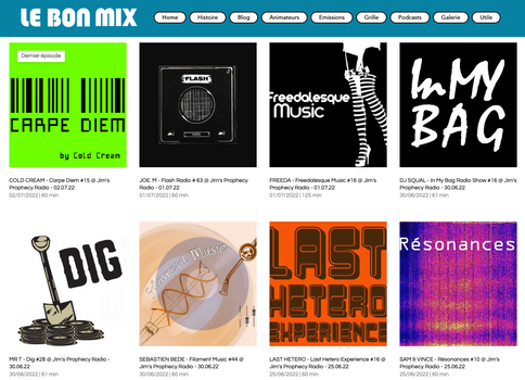 - L'onglet Podcasts : vous serez dirigé vers les replays des émissions Le Bon Mix ou Jim's Prophecy avec un lecteur moderne, avec les fonctions "revenir" et "avancer" de 15 secondes, "télécharger" le podcast et si vous êtes pressé, "accélérer" la lecture (ou si vous avez vraiment le temps, le "ralentir" de moitié).